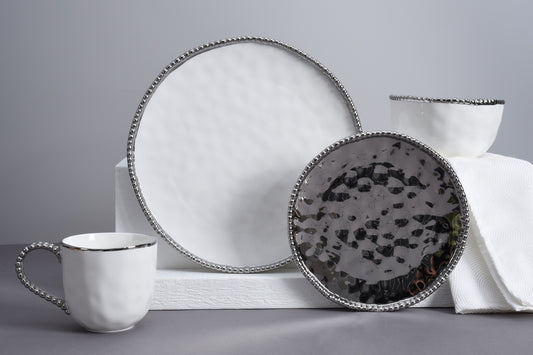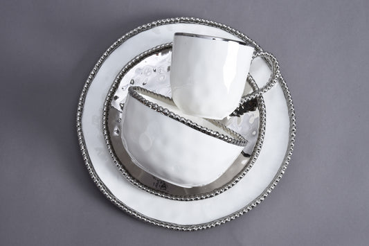 Round Silver Salad Plate with Beaded Edge - Set the Table