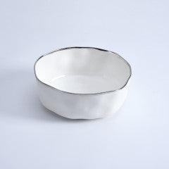 The Bianca Large Bowl is expertly crafted with a smooth white porcelain finish and a sleek silver rim. Each bowl showcases a unique, hand-crafted feel, adding a touch of sophistication to any dining experience. Additionally, the bowl is resistant to stains and scratches and can withstand multiple washes in the dishwasher, making it a practical and durable addition to your tableware collection.
