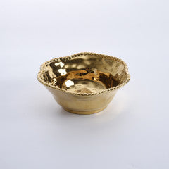This elegant Monaco salad bowl is crafted from gold-toned porcelain, featuring a matching beaded edge. The scratch-resistant material ensures long-term durability, while its dishwasher-safe design makes for easy cleaning. Dress up your table and impress your guests with this stunning addition to your serveware collection.