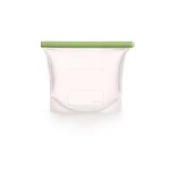 Medium reusable platinum silicone bag to store food hermetically, preserve or marinate it. A sustainable alternative to disposable plastic wrapping, throw-away packaging, trays and cling wrap.