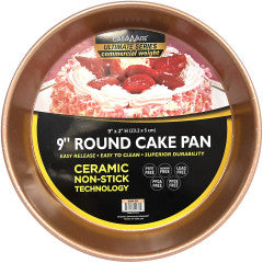 Ceramic Non-Stick Technology Provide a Greater Baking Experience. Very Easy to Clean. Just wipe or scrub softly and the food slides off easily. Ceramic Coating is FDA, California Proposition 65 and European Union Approved. The Ceramic Coating is Cadmium, Lead, PFOA, PTFE and PFOS Free. This pan features our exclusive Red colored granite ceramic coated easy release baking surface. Its rich cream and brown accent flects make this bakeware both high fashion and high function. The exterior surface of the pan is coated with a complimentary high temperature non-stick Red with metallic copper and brown dots colored finish. Double Coated Ceramic Surface over 0.6 mm carbon steel provides Long Lasting Durability and Scratch Resistance. Heat Tolerance to 450 degrees Fahrenheit, no peel off or blistering in high temperatures. Product dimensions: 9-Inch diameter. This pan also fits most toaster ovens. Hand Washing recommended. Do not microwave. Refer to product description for Use and Care Instructions.