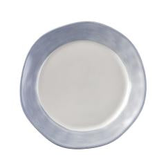 Azores, our hand painted line, reminds us of the beautiful shimmering lagoons, and breathtaking waterfalls found on the magnificent Portugal islands of Azores. Artists carefully hand paint the borders of each plate using a matte glaze for Blue Lagoon, a beautiful light grey for Greige Shimmer and for our newest introduction, Oceana, a glossy white with blue . We have added coordinating striped salads and mugs to complete this beautiful line. Freezer, oven, microwave and dishwasher safe.
