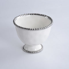 The Salerno Small Footed Bowl is a stylish and durable addition to any table setting. Crafted from white porcelain with elegant silver beading, it is both stain and scratch resistant, making it a long-lasting choice. Plus, it is dishwasher safe for easy cleaning. Elevate your dining experience with this versatile and functional bowl.