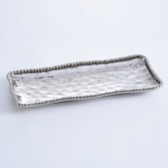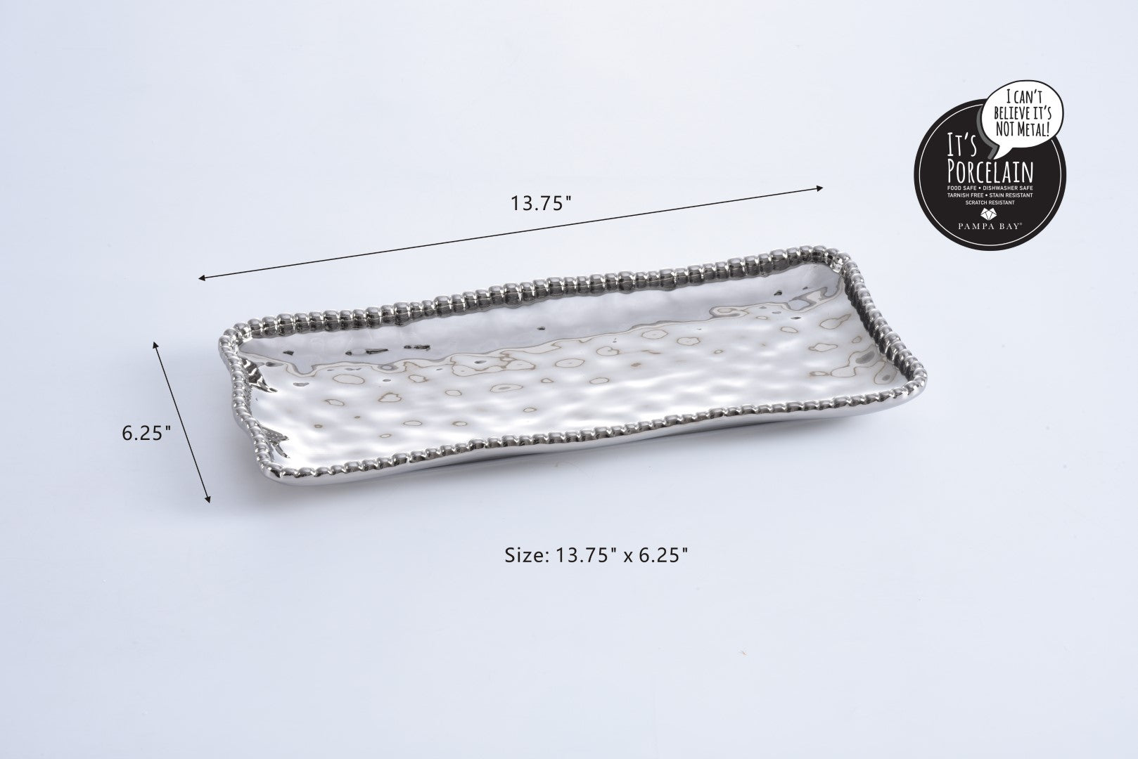 The Verona Medium Rectangular Tray is expertly crafted from silver tones porcelain with matching beading along the edges. Its scratch-resistant surface ensures durability and easy cleaning, making it a perfect addition to any kitchen. As an industry expert, we can confidently assert that this tray is both practical and elegant.